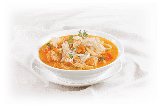 – Đun sôi nước dùng, cho cà rốt tỉa hoa, nấm rơm, đậu hũ và hành poa-rô phi vào, nêm 2M hạt nêm Aji-ngon® từ Nấm Hương và Hạt Sen, 1/2m bột ngọt AJI-NO-MOTO®, 1m muối và 1m đường, nếm vị vừa ăn, cho bánh canh, chả lụa vào, đun vừa sôi, cho 2M nước bột năng vào cho sôi lại, tắt lửa, cho ngò rí vào.
