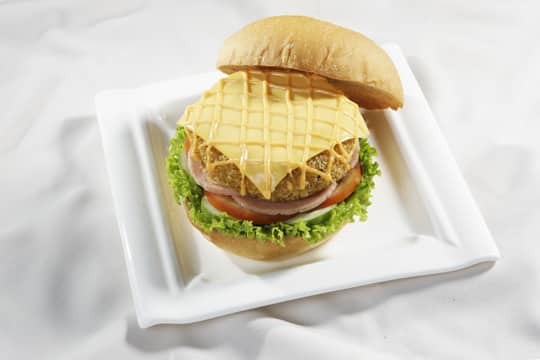 – Bánh mì cắt đôi, nướng sơ, hoặc áp chảo cho thơm. Phết hỗn hợp xốt Mayonnaise Aji-Mayo® lên mặt bánh. Xếp xà lách, dưa leo, cà chua kèm nhân phô mai. Xếp lần lượt, dưa leo, cà chua, nhân burger, xà lách rồi đặt nửa bánh mì lên.